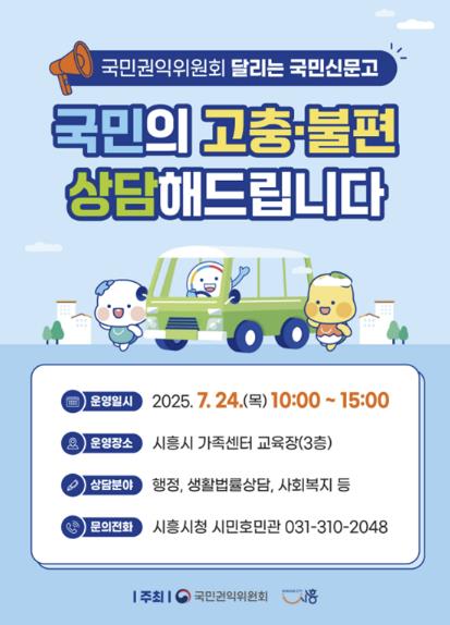 2021년, 2023년, 2024년에 이어 올해로 네 번째를 맞는 이번 ‘달리는 국민신문고’는 국민권익위원회, 사회복지협의회, 한국지역난방공사, 시흥시 시민호민관의 협업으로 운영된다.