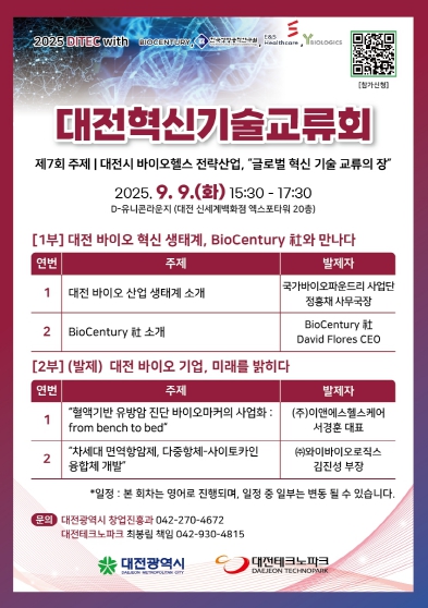 최원혁 대전시 기업지원국장은 “대전의 바이오산업 창업생태계는 올해 5월 글로벌 스타트업 생태계 연구기관 ‘스타트업 블링크’가 세계 81위로 평가했을 만큼 경쟁력을 인정받고 있다”라며 “대전 바이오 생태계와 글로벌 동향에 관심 있는 분들이 많이 참여해 유익한 정보를 얻어가길 바란다”라고 말했다.