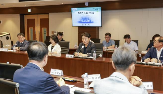 간담회에서 군포첨단산업단지 입주기업협의회(회장 김권진)에서는 ▲첨단산업단지 업종 배치계획 개선 ▲공영주차장 건립 ▲산업단지 내 우체국 신설을 건의했고 군포도시형소공인연합회(회장 이준행)에서는 ▲군포소공인특화지원센터내 소공인 업무지원을 위한 공용공간을 마련해줄 것을 건의했으며 군포뿌리산업협의회(회장 박범순)에서는 ▲기업지원 사업예산의 확대를 건의했다.