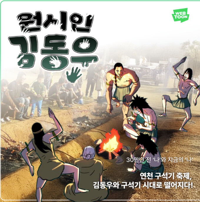 연천군은 전곡리 유적 일원에서 열리는 제32회 연천 구석기 축제에서 네이버 인기 웹툰 ‘원시인 김동우’를 활용한 특별 체험 프로그램을 운영한다