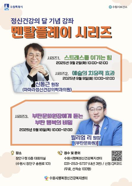 수원시행복정신건강복지센터 관계자는 “시민들이 자신의 정신건강을 돌아보고, 일상에서 실천할 수 있는 정신건강 관리법을 배우는 계기가 되길 바란다”고 말했다.
