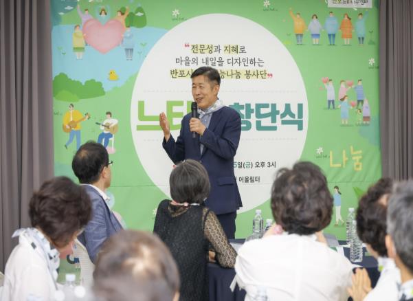 이날 창단식에는 전성수 서초구청장을 비롯해 전미자 한국복지환경디자인연구소 이사장, 시니어 재능나눔 봉사단에 참여하는 어르신 등 60여 명이 참석해 지역사회에 따뜻한 나눔을 실천하기 위한 운영 방향과 활동 계획을 논의했다.