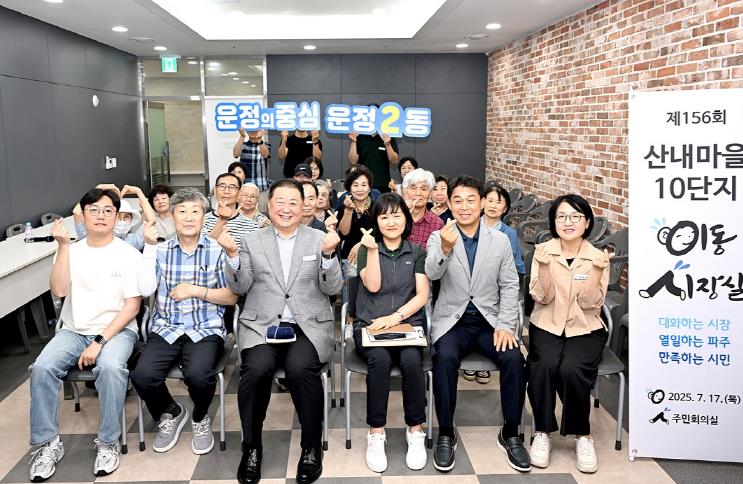 ‘이동시장실’은 지역의 곳곳을 찾아가 시민 생활과 밀접한 지역의 문제를 고민하며, 현장에서 시민들과 직접 토론하고 해결 방안을 찾는 파주시의 대표적인 시민소통프로그램으로 이번 산내마을 10단지 행사로 156회째를 맞는다.