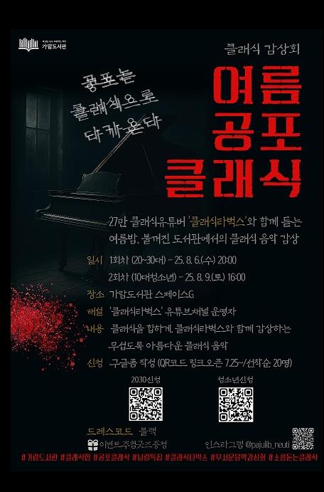 이번 감상회는 ‘공포’라는 주제를 클래식 음악과 접목해, 클래식에 익숙하지 않은 세대도 쉽고 흥미롭게 접근할 수 있도록 기획됐다. 특히 구독자 약 27만 명을 보유한 유튜브 채널 ‘클래식타벅스’와 협업해 이야기 중심의 해설과 함께 클래식을 감상하며 공포의 심리를 음악적으로 체험하는 시간을 마련했다.
