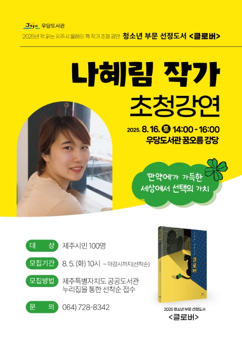 참여 신청은 8월 5일 오전 10시부터 제주특별자치도 공공도서관 누리집에서 온라인 선착순 접수로 진행된다.