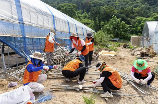 의원들은 이날 현장에서 피해 주민으로부터 상황에 대해 설명을 들은 뒤 인접한 조종천의 범람으로 침수된 비닐하우스 내 폐자재를 치우고 집기를 정리하는 작업을 진행했다.