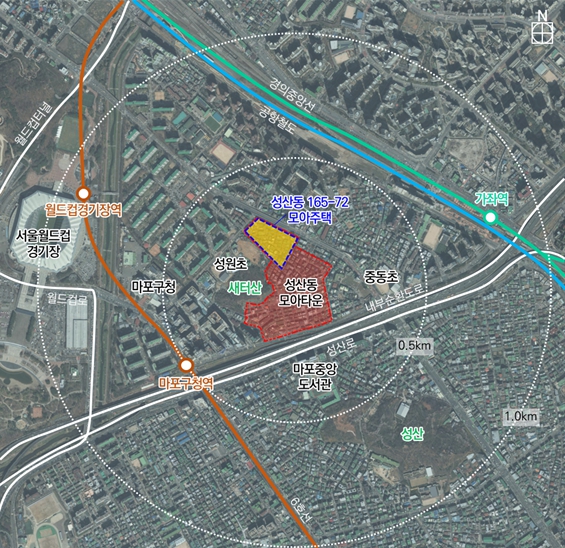 이 지역은 마포구청역(6호선)과 가깝고, 성원초등학교 인근에 위치해 교육환경도 우수하다. 또한 인근 성산동 200-413번지 일대도 조합설립 인가를 앞두고 있어 모아타운 내 연계 개발이 본격화될 전망이다. 모아주택사업의 장점인 신속한 조합설립, 사업의 순차적 추진으로 향후 모아타운이 완성되면 성산동 일대 저층주거지의 주거환경이 획기적으로 개선될 것으로 기대된다.