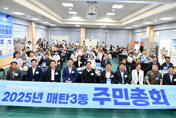 2025년 매탄3동 주민총회에는 마을 주민 100여 명이 참석한 가운데 주민자치회 활동사항 보고와 내년도 주민자치회가 이끌어갈 마을자치계획 발표 및 우선순위 현장 투표 순으로 진행됐다.