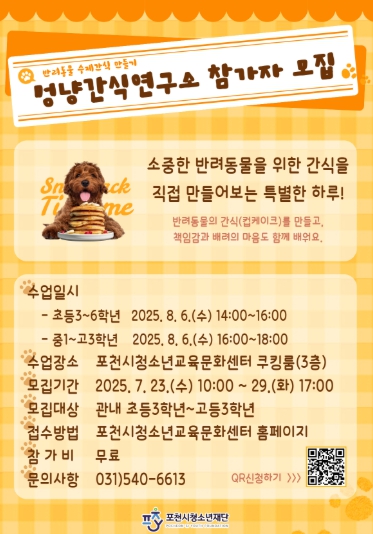 청소년들이 반려동물의 식습관과 건강한 먹거리에 대해 배우고, 수제 간식을 만들어보는 체험 활동으로 구성했다. 청소년들이 반려동물에 대한 책임감과 배려의 마음을 기르는 것은 물론, 진로 탐색의 기회도 제공할 것으로 기대된다.