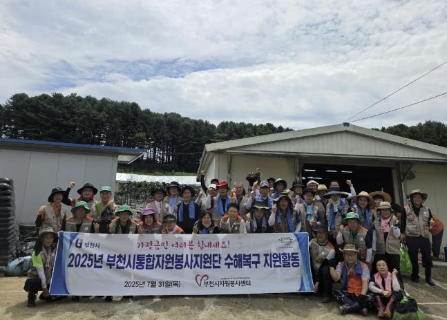 이날 현장에는 부천시자원봉사센터가 운영하는 통합자원봉사지원단 소속 자원봉사단체 임원과 회원 등 총 45명이 참여했다. 이들은 폭염 속에서도 침수 피해를 입은 농경지를 정리하고, 쌓인 토사를 제거하는 등 복구 작업에 구슬땀을 흘렸다.