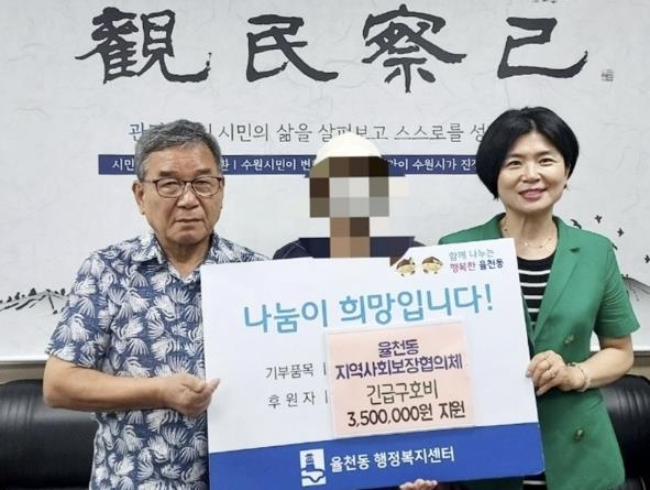 이런 어려움을 알게 된 율천동 지역사회보장협의체는 월례회의 안건으로 상정해 건강보험료 체납금 대납과 생계비 지원을 결정했다. 긴급구호비는 ‘3천원의 희망기금’으로 집행되었으며, 이 기금은 ‘매월 3천원으로 나누는 세상에서 가장 값진 기부, 같이 행복한 율천동 만들기’라는 취지 아래 지역 주민들의 자발적 기부로 운영되고 있다.