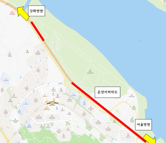 김포시에 따르면 김포한강로 노선의 운양지하차도에 대해 약 3억 원의 예산을 투입하여 터널 조명 400여 개를 교체하는 공사로, 7월 24일부터 8월 2일까지 야간시간(22시~익일 5시)에 서울과 강화 방향 차로 일부를 순차적으로 통제할 계획이다.