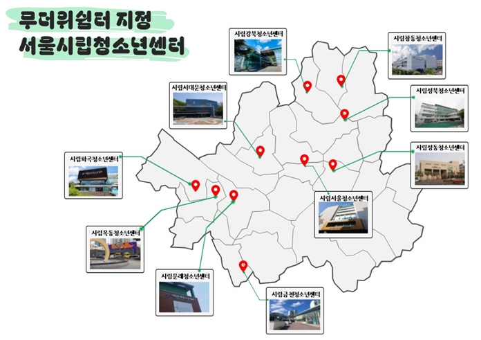 시립 청소년센터 중 시민 이용이 많은 10곳도 무더위쉼터로 새롭게 지정했다. 해당 시설은 시립 강북‧금천‧목동(양천구)‧문래(영등포구)‧서대문‧서울(중구)‧성동‧성북‧창동(도봉구)‧화곡(강서구) 청소년센터다.