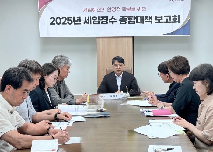 이번 보고회는 이석범 부시장의 주재로 올해 상반기 지방세‧세외수입 징수실적, 세무부서별 주요 추진사항 및 향후 계획에 대해 논의했으며, 특히 하반기에도 계속될 미국 관세 이슈 및 정부의 대출 규제 정책 발표에 따른 부동산 수요와 거래량 동반 위축 등으로 경제가 불안정할 것으로 예상되어 대책 방안도 함께 검토했다.