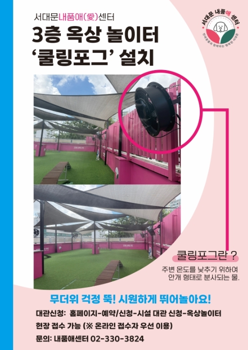 이성헌 서대문구청장은 “내품애센터 옥상놀이터는 반려견과 보호자가 함께 쉴 수 있는 도심 속 쉼터”라며 “쿨링포그 설치로 여름철에도 한층 쾌적하게 이용하실 수 있을 것”이라고 말했다.
