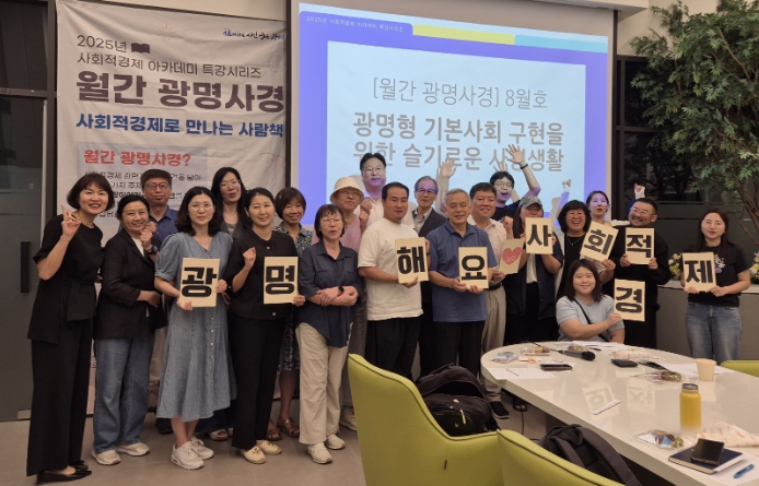 이번 강좌는 ‘광명형 기본사회 구현을 위한 슬기로운 사경생활’을 주제로 열렸으며, 사회적경제가 지역에서 시민 삶의 질을 높이고 기본사회를 실현하기 위해 어떤 역할을 할 수 있는지 논의하는 자리였다.