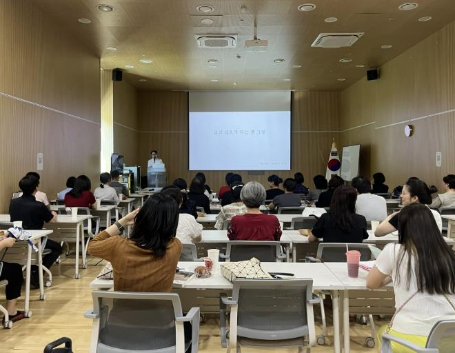 이번 연수는 교원의 예술·인문학적 역량을 강화하고, 지역 문화자원과 연계한 새로운 교육 방향을 모색하기 위해 마련됐다. 연수에는 예술사학자 탁현규 교수와 서울대학교 명예교수 전영애 교수가 참여해 동서양 인문예술 강연을 진행했다.