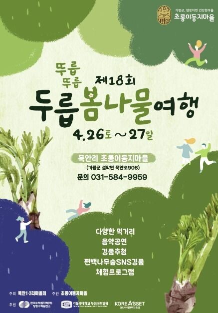 가평군 설악면 묵안리 초롱이둥지마을에서는 지금 두릅, 봄나물의 다채로운 맛과 체험을 할 수 있는 특별한 축제가 열리고 있다.
