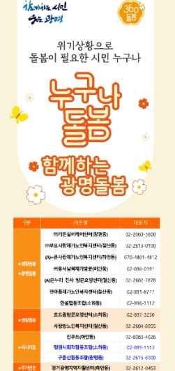 한편, ‘누구나 돌봄, 함께하는 광명돌봄’ 사업은 경기도와 광명시가 함께 추진하는 연계 돌봄사업으로 가족돌봄 공백, 제도 미비, 인프라 부족 등 기존 돌봄체계의 사각지대를 보완해 노인·장애인·1인 가구·청장년 독거 가구 등 돌봄 취약계층에게 신속하고 실질적인 서비스를 제공하고 있다.