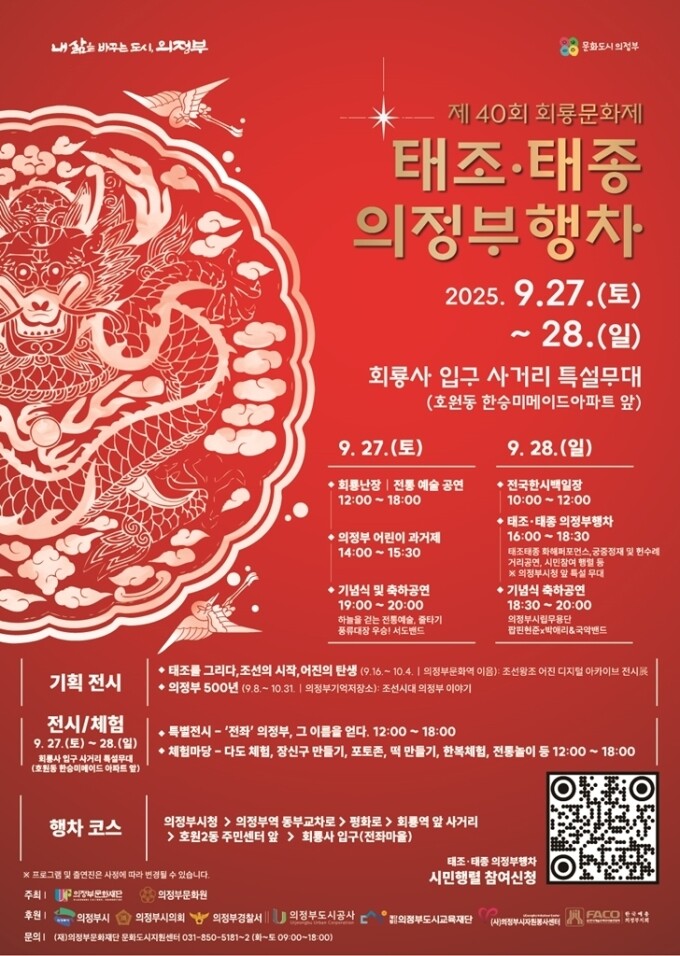 의정부시가 620년 만에 ‘태조·태종 의정부행차’를 재현하며 도시의 역사적 정체성을 되살린다. 오는 27일부터 28일까지 열리는 ‘제40회 회룡문화제’의 핵심 프로그램으로, 이번 행사는 조선 건국의 상징인 태조 이성계와 태종이 극적인 화해를 이루는 서사를 현대적으로 재해석해 의정부를 군사도시에서 문화도시로 탈바꿈시키는 전환점이 될 전망이다.