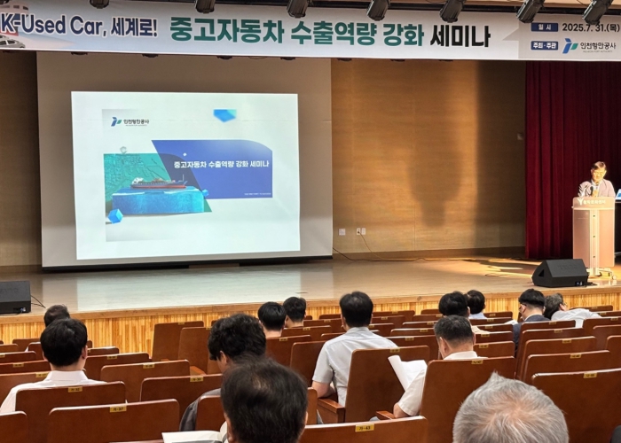 인천항의 중고자동차 6월 말 기준 누적 수출 물동량은 전년 동기 대비 46.5% 증가한 45만 8천대로, 이번 세미나는 급증하는 중고자동차 수출업계의 경쟁력 강화 및 인천항의 수출 물동량 확대하기 위해 마련됐으며 중고자동차 수출업체, 선사, 포워딩 업체 관계자 등 약 60여명의 업계 관계자들이 참석했다.