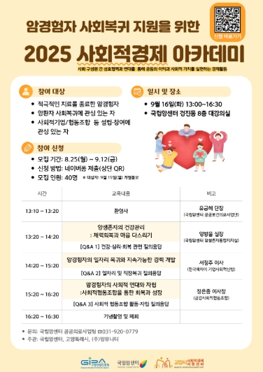 고양산업진흥원 고양시사회적경제지원센터가 오는 9월 16일 국립암센터에서‘2025년 고양시 사회적경제 아카데미’를 개최한다.