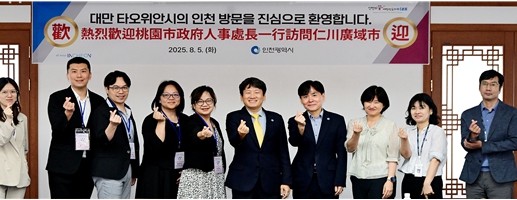 홍준호 시 행정국장은 “인천과 타오위안은 수도권에 인접해 있고 국제공항 보유와 도시규모 등 여러 공통점을 갖고 있다”며 “이 같은 유사점을 바탕으로 인사, 조직 등 다양한 분야에서 정책 협력을 지속해 나가겠다”라고 말했다.