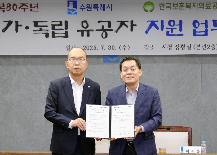 윤종진 이사장은 “광복 80주년에 수원시와 국가·독립유공자 예우·지원을 강화하는 협약을 체결해 뜻 깊다”며 “국가·독립유공자 지원을 위한 협력이 지속되길 바란다”고 말했다.