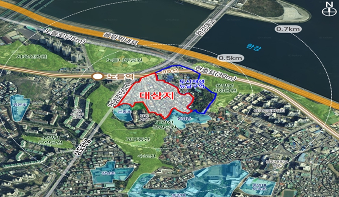 또한, 노들역에서 정비구역의 반대편까지 연결되는 직선형 통경축을 통해 도심과 한강, 용양봉저정공원까지 이어지는 개방감 있는 경관을 제공하고, 시인성을 확보해 도시경관의 차별화를 이룬다.