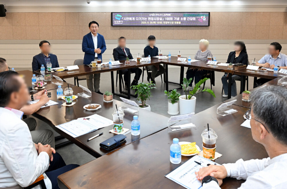 의정부시가 '시민에게 다가가는 현장시장실' 100회를 맞아 지난 28일 시청 회룡홀에서 소통 간담회를 열었다. 민선 8기 출범 이후 4년간 이어진 현장 중심 소통의 발자취를 돌아보고, 앞으로의 방향을 모색하는 자리였다.