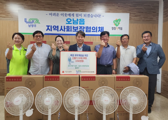 기부받은 선풍기는 대상자 선정 후 오남읍 지역사회보장협의체 위원들이 직접 가정을 방문해 전달할 예정이며, 사용법 안내와 함께 폭염 시 유의사항도 함께 안내할 계획이다.