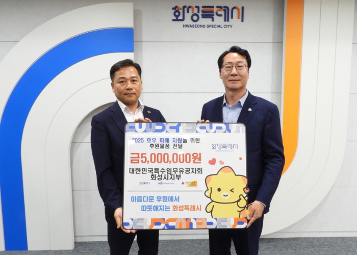 조용하 대한민국특수임무유공자회 화성시지회장은 “이번 집중호우로 피해를 입은 이재민과 시민들에게 위로의 말씀을 전한다”며 “작은 나눔이지만 수해민들이 하루 빨리 일상으로 돌아갈 수 있도록 피해 복구에 도움이 되길 바란다”고 말했다.