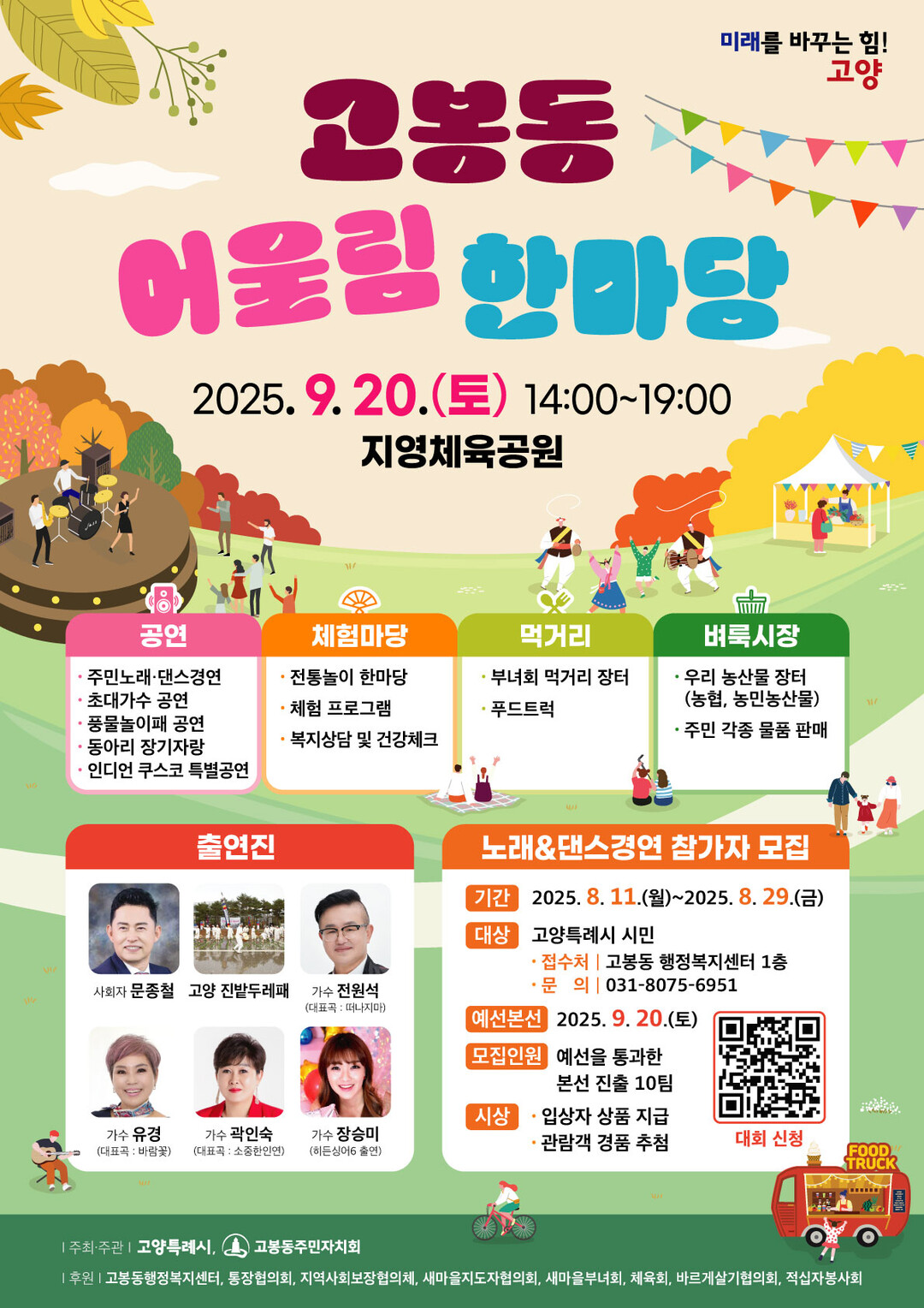 조명휘 고봉동 주민자치회장은 “고봉동 어울림 한마당은 주민이 주인공이 돼서 소통하고 화합하는 자리”라며 “세대와 이웃이 함께 웃고 즐기며 행복한 추억을 쌓기를 바란다”고 기대했다.