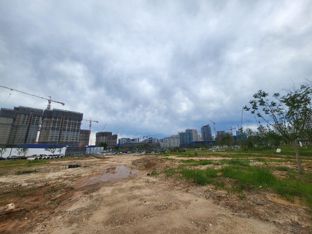 운정3지구에 잇따라 들어서고 있는 역세권 아파트들과 달리 썰렁한 모습으로 남겨져 있는 주복 1, 2블록 모습을 카메라에 담았다.