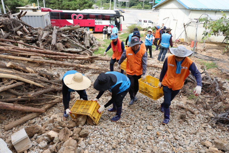 이번 수해복구는 연일 계속되는 폭염 가운데에서도 집중호우로 엄청난 피해를 입은 농민들을 위하여 자원봉사자들이 자발적으로 참여하여 집중호우로 산에서 밀려 내려와서 수확기를 앞두고 있는 포도밭을 뒤덮고 있는 돌과 토사 제거 작업을 통해 수해로 어려움을 겪고 있는 지역주민들을 위로하고, 조속한 일상 회복을 위한 자원봉사활동을 전개했다.
