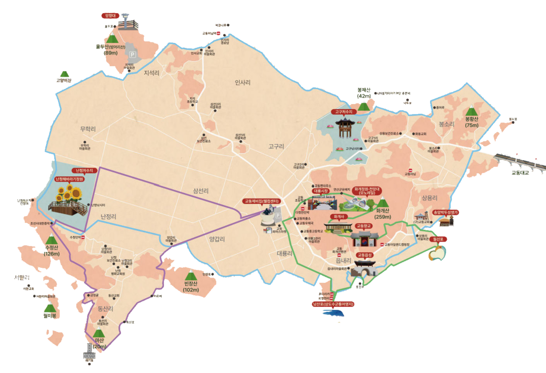 강화 ‘교동도’. 행정구역으로 인천시 강화군 교동면이다. 인천광역시에 속해 있지만 교동면 북부 해안선은 휴전선의 남방 한계선이다. 따라서 교동 서북부쪽은 휴전선 너머에 북한 황해도 연안군·배천군과 마주보고 있다.이처럼 교동도는 북한과의 거리가 2.6km에 불과한 접경지역으로, 한국전쟁 당시 황해도 연백에서 피난 온 실향민들이 모여 삶의 터전으로 지내고 있는 섬이다. 오랜 시간 도시화가 늦어진 도서(島嶼)지역으로 '시간이 멈춘 섬'의 이미지가 남아 있다.2014년 교동대교 개통을 계기로 거듭난 교동도가 훼손되지 않은 자연과 함께 최신 ICT기술 기반의 다양한 관광 콘텐츠가 주목을 받고 있다.이에 '평화와 통일의 상징'이며 '시간이 멈춘' 레트로 감성의 교동도를 추석 연휴 중 하루여행 개념으로 다녀올 수 있도록 간략히 소개한다. / 편집자 주