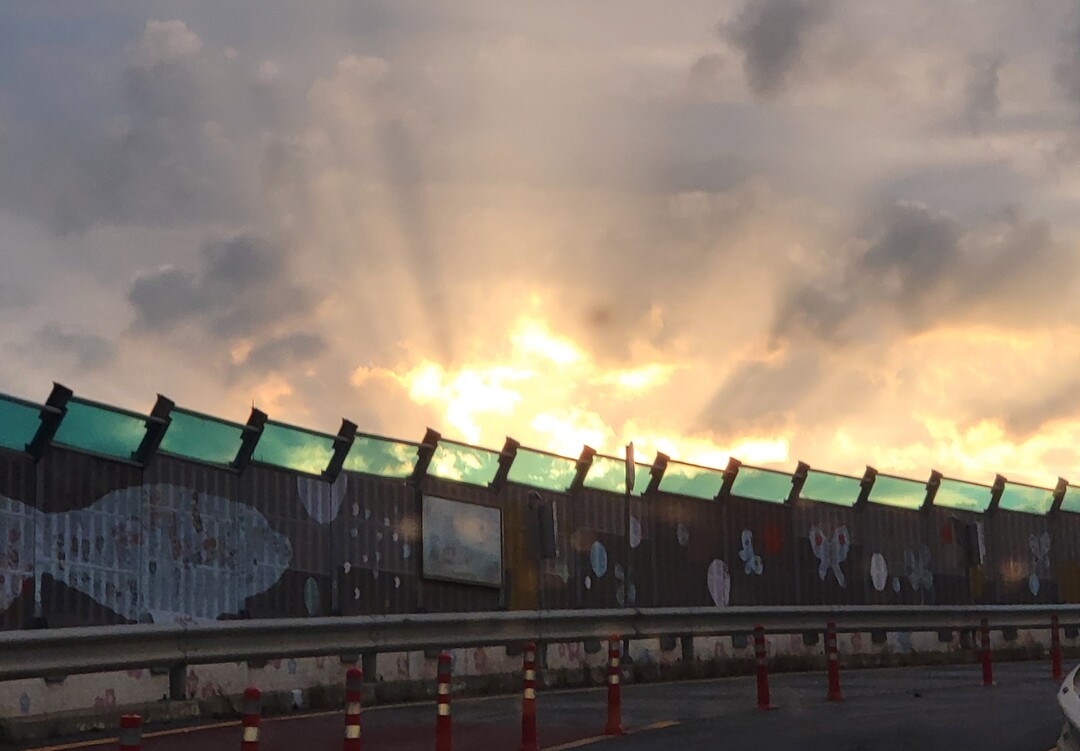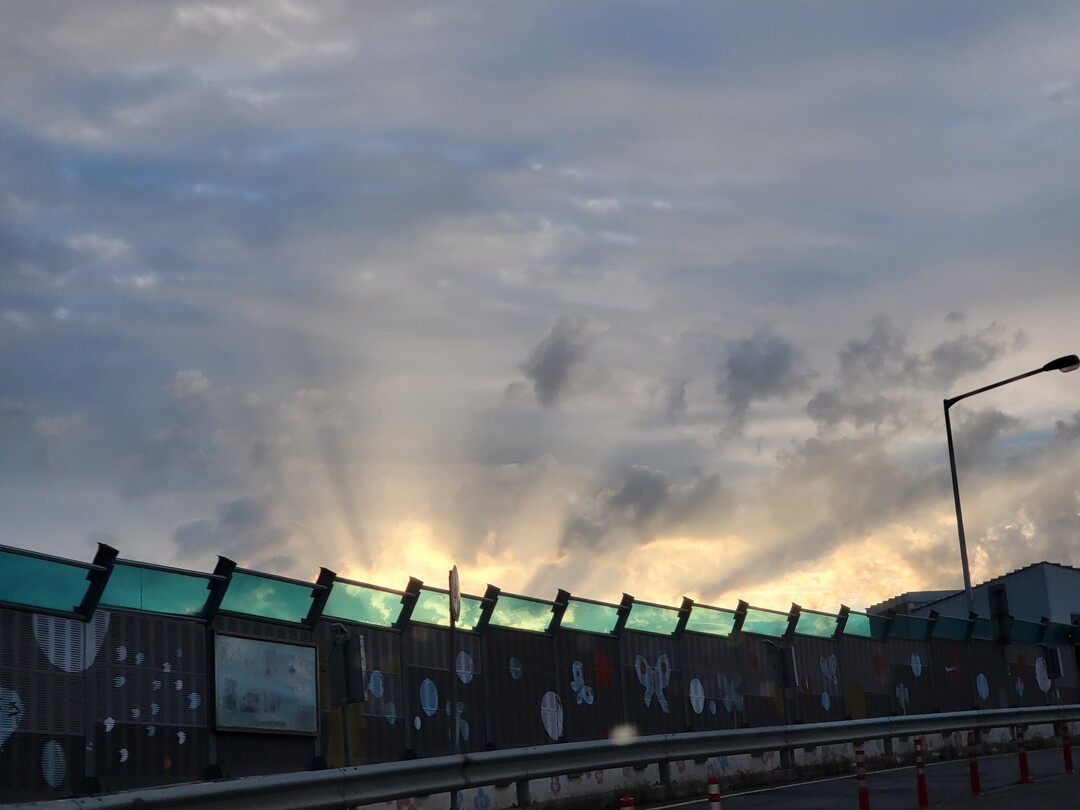 이른 새벽길, 동트면서 하늘을 비추는 여명을 카메라에 담다.