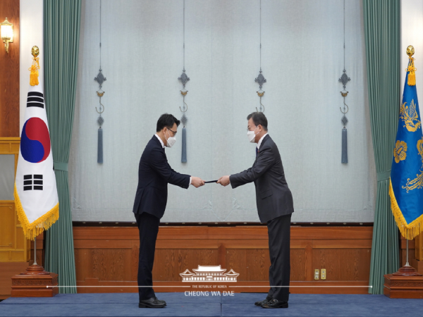 문 대통령은 “고위공직사회의 투명성과 청렴성 지킴이로서 우리 사회를 더 공정하고 부패없는 사회로 이끌어가는 견인차로서 자긍심과 사명감을 가져 달라”고 했다.