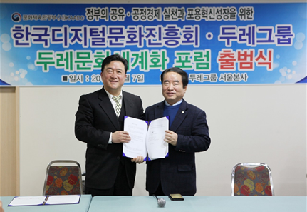 한국디지털문화진흥회는 더불어 잘 살자는 '포용국가론'과 '공유경제'의 뿌리를 평등형 상부상조의 문화유산인 '두레'에 중심을 두고, 디지털컨텐츠화·세계화·경제시스템화 지원에 집중하고 있다.