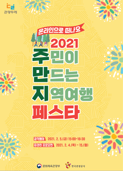 6회째를 맞이한 이번 행사에서는 ‘관광두레 주만지(주민이 만드는 지역여행) 축제(페스타)–온라인으로 떠나요’라는 주제로 주민사업체 190여 곳이 온라인을 통해 직접 만나볼 수 있도록 관광두레 온라인 여행 등 다양한 참여 행사를 마련했다.