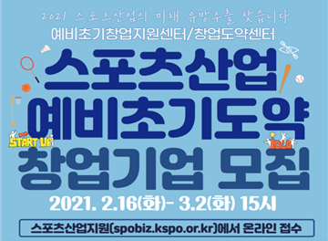 선정된 기업은 예비·초기 창업지원센터와 창업도약센터를 통해 창업교육, 현장실습, 연수회, 기업교류 등 맞춤형 창업보육과 함께 기업당 사업화자금을 평균 3,000만 원(최대 4,500만 원)을 지원받는다. 2월 23일(화)에 개관하는 스포츠산업종합지원센터에서도 법률·노무 전문가 연계 상담, 스포츠산업 투자주간, 국내외 판로개척 지원 등 다양한 프로그램과 연계해 선정 기업을 지원한다. 선정 결과는 3월 중 최종 발표할 예정이다. 공모와 관련한 더욱 자세한 사항은 ‘스포츠산업지원 누리집과 전화를 통해 안내받을 수 있다.