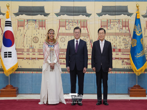 오늘 신임장을 전달한 주한대사는 남스라이 에르덴토야 주한몽골 대사, 페카 멧초 주한핀란드 대사, 마리아 카스티요 페르난데즈 주한유럽연합 대사, 알레한드로 호세 로드리게스 사모라 주한코스타리카 대사, 아키바 토르 주한이스라엘 대사, 무웬데 무윈지 주한케냐 대사, 로드리고 코로넬 킨로치 주한니카라과 대사, 캐서린 제인 뢰이퍼 주한호주 대사다.
