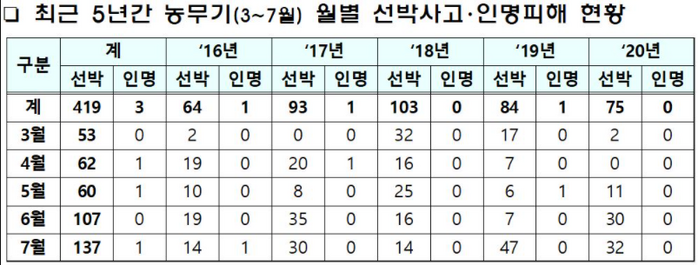 이에 따라, 해양경찰청은 해양사고를 예방하고 사고 발생 시 신속히 구조하기 위해 ‘2021년 농무기 해양사고 대비·대응 계획’을 수립, 시행한다.