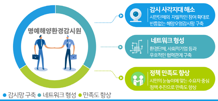 광활한 바다 환경을 지키기 위해 국민 참여 해양환경 감시제도 운영 필요성에 대한 국민의 공감대가 형성돼, 2019년 ‘명예해양환경감시원’ 제도를 법제화, 올해 처음으로 감시원을 모집·운영하게 됐다.