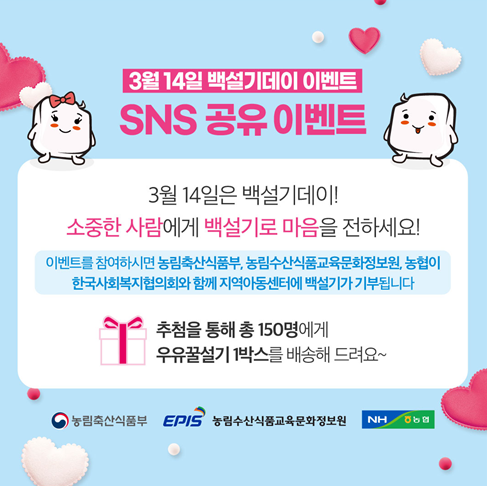 이번 이벤트는 “소중한 사람에게 백설기로 마음을 전하세요”를 주제로 ▲ 백설기 SNS(사회관계망서비스) 인증이벤트, ▲ 백설기데이 이모티콘 배포 등 온라인으로 참여할 수 있는 프로그램으로 진행된다.