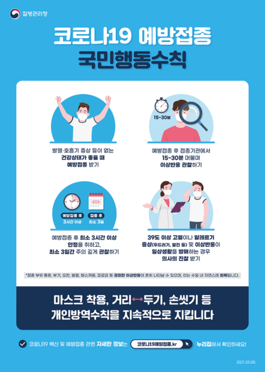 - 예방접종 후 접종기관에서 15분~30분 머물며 이상반응 관찰하기