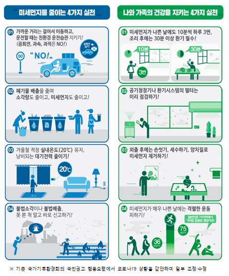 수도권에 위치한 행정·공공기관 운영 사업장에서는 운영시간을 단축하거나 조정하고, 건설공사장에서는 공사시간 변경·조정, 방진덮개 덮기 등 날림(비산)먼지 억제조치를 실시한다.
