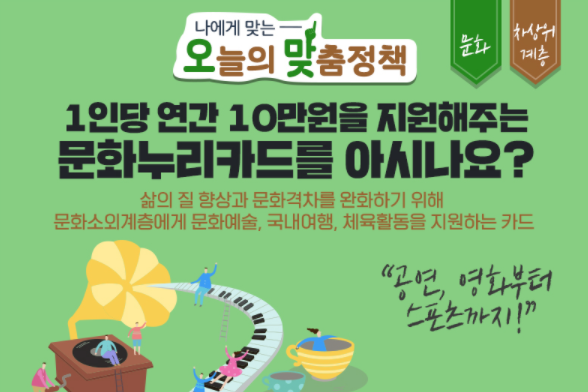 문화소외계층에게 문화예술, 국내여행, 체율활동을 지원하는 카드