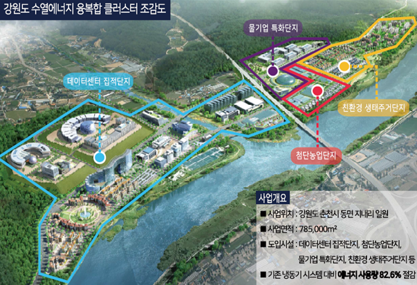 특히, 이 클러스터에는 정보통신 산업 발달과 함께 급성장하고 있는 데이터센터 집적단지를 조성할 예정으로 전력소모가 심한 데이터센터의 냉·난방 전기사용량의 약 70%를 절약할 수 있을 것으로 예상된다.