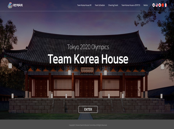 이번 ‘팀코리아하우스’는 코로나19 확산에 따라 현장 전시와 응원을 할 수 없는 상황에서 더욱 많은 국내외 사람들이 한국의 문화를 접하고 우리 선수들을 응원할 수 있도록 하기 위해 마련한 것이다.